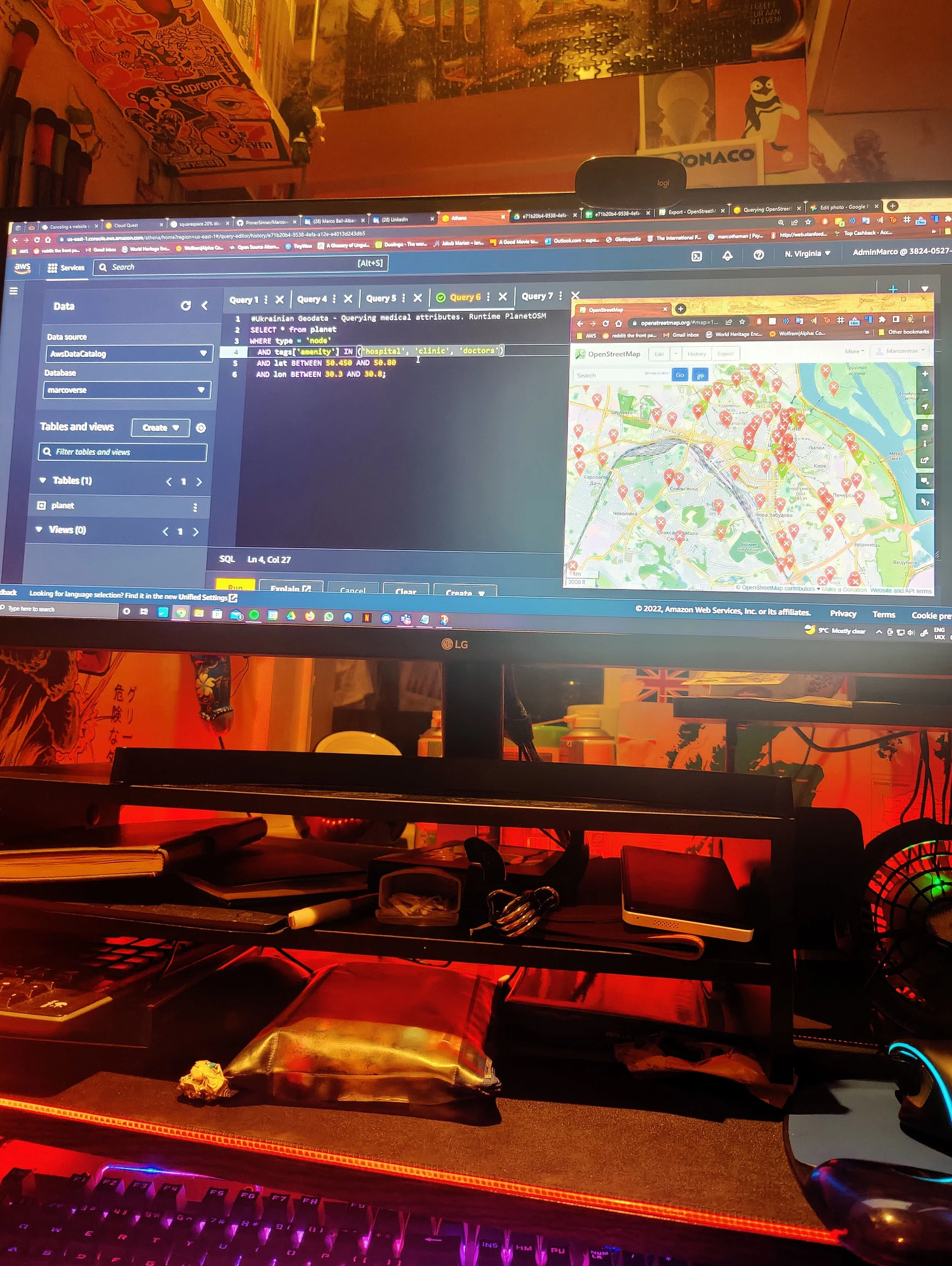 My objective is to query data directly from Athena and leverage all of OSM’s geospatial functionality to give users the ability to work with massive geospatial data sets. It is a proof of concept work.